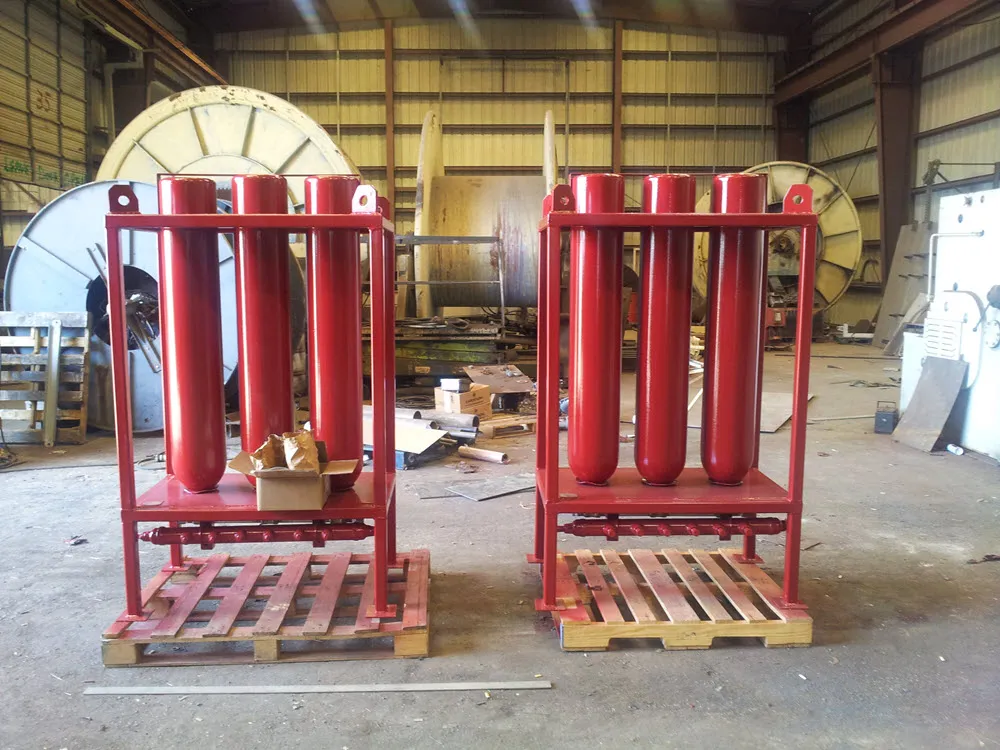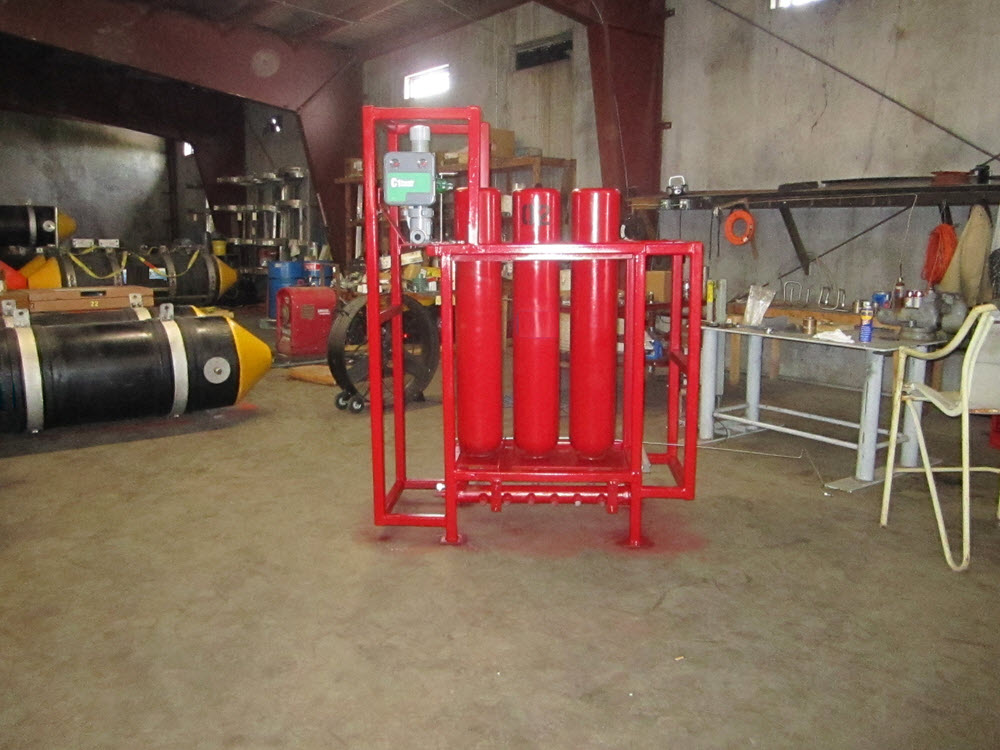 Modular bottle racks designed for vessels of opportunity. With or without Fisher valve. Can attach oil injectors and/or air distribution manifolds as needed. Multiple racks can be chained together for more storage. Smaller racks allow you to use less deck space!
